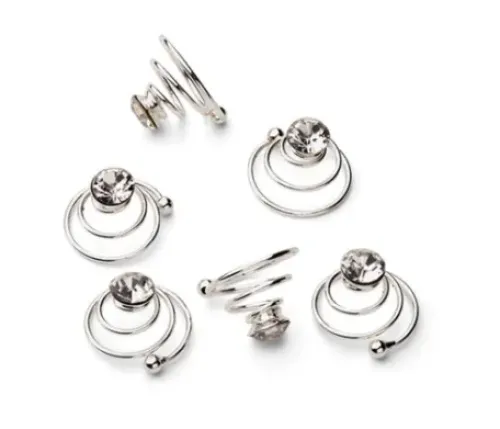 Curlies mit einem funkelnden Strassstein. Diese einfache Haarspirale lässt glänzende Akzente in der Brautfrisur entstehen und setzt auch ein Blumenmädchen sehr hübsch in Szene. Das Curlie lässt sich einfach in die Frisur einarbeiten und hebt Highlights der Haarkreation hervor. Da das Curlie sehr klassisch ist, lässt es sich auch hervorragend mit anderen Haaraccessoires kombinieren und ermöglicht schöne Übergänge in der Frisur mit verschiedenen Accessoires.