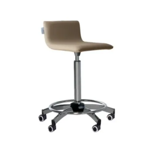 Dieser Stuhl ist sowohl für Schönheitsbehandlungen als auch als Empfangshocker geeignet. Er besticht durch seine schlichte Form und der quadratischen Bodenplatte.