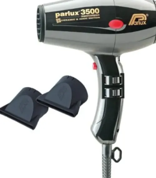 Der Parlux 3500 Supercompact Ceramic + Ionic ist handlich und kompakt gestaltet, um überall dabei zu sein. Seine Hauptmerkmale sind hohe Leistung in kleinem Design von nur 17 cm Länge. Im Vergleich zu herkömmlichen Haartrocknern sorgt dieses kleine Kraftpaket mit Ionic & Ceramic-Technologie für antistatisches und gesund glänzendes Haar.