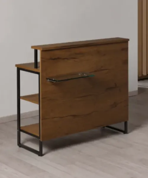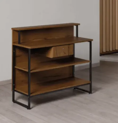Diese moderne und elegante Theke im Vintage-Look ist zeitlos und fällt trotzdem auf. Durch ihren Metallrahmen in eckiger Form verleiht er der Verkaufstheke einen klassischen Retro-Charme und sorgt für den nötigen Charakter in ihrem Salon. Die drei Regaleinlagen bieten zusätzlich Platz für Stauraum. Unter dem oberen Regalboden befindet sich eine abschliessbare Schublade, welches sich optimal für eine Kasse eignet.