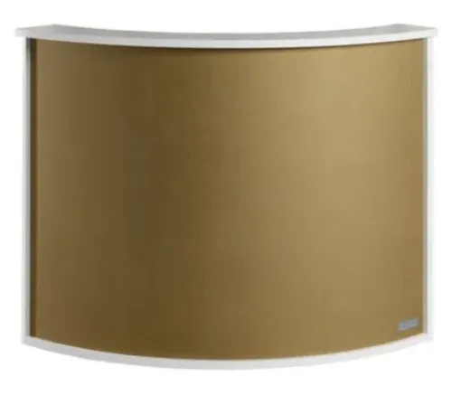 Die Theke mit dem aussergewöhnlichen Design beeindruckt durch seine elegante geschwungene Form. Die gebogene Thekenfront ist mit Bezugsstoff überzogen. Auf der Innenseite befindet sich ein Ablagefach sowie eine Schublade für zusätzlichen Stauraum.