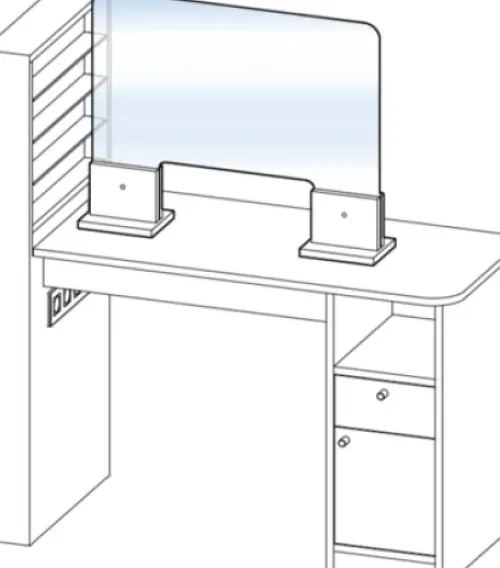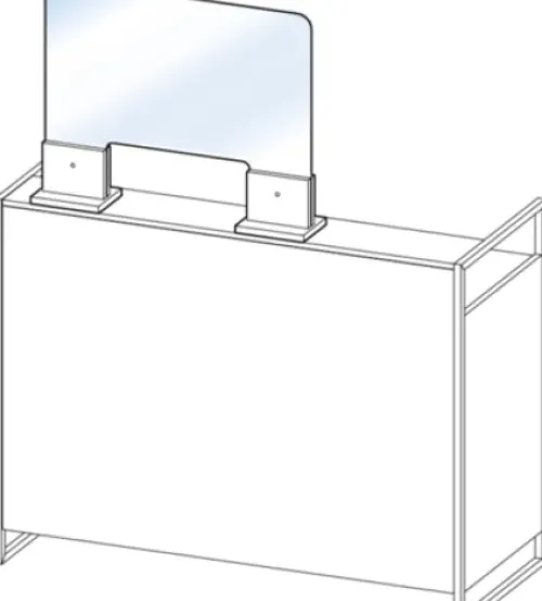 Schutzwand aus klarem Sicherheitsglas (desinfektionsmittelbeständig, keine elektrostatische Aufladung).
