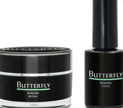 - Tragen Sie eine sehr dünne Schicht des Butterfly Bonding Gels auf. Lassen Sie das Gel in der 36W UV Lampe für 120 Sek./ in der LED Lampe für 60 Sek. aushärten.