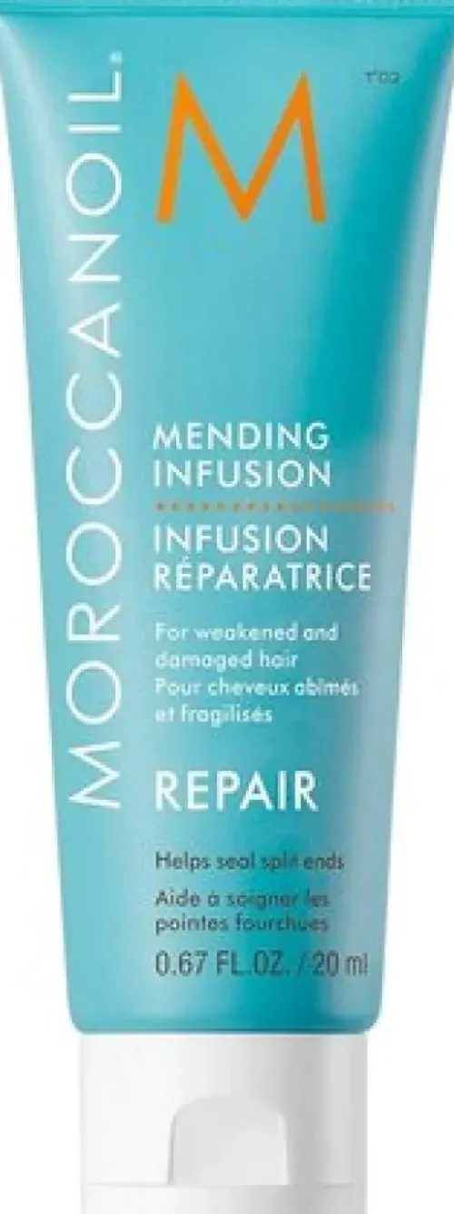 Moroccanoil Mending Infusion ist ein ultraleichter, sofort absorbierender Finisher, der hilft, trockene, spröde Spitzen zu nähren und zu stärken. Die mit Arganöl angereicherte Formel versiegelt und pflegt die Spitzen und sorgt für eine glatte, frisch geschnittene Optik, ohne Spliss. Dieses Leave-In-Produkt reduziert sichtbare Zeichen von Haarschädigung, wie z.B. ausgefranste und trockene Spitzen. Es entsteht eine angenehm seidige Textur und gesund aussehendes Haar.