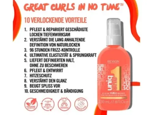 Die UniqOne Curls Leave-in-Kur verwandelt Ihre Lockenpflege-Routine mühelos – ein revolutionäres One-Step-Produkt, das 10-in-1 echte Vorteile bietet, die für jede Art von Locken unerlässlich sind. Mit einer Hybridformel, die pflegt und stylt, nährt und repariert diese Leave-in-Kur geschädigte Locken und bietet 96H Frizz-Kontrolle und ultimative Sprungkraft. Die vegane Formel und die Flasche, die zu 25 % aus recyceltem Kunststoff besteht, machen dieses Produkt zu einem unverzichtbaren All-in-One-Produkt für lockiges Haar.