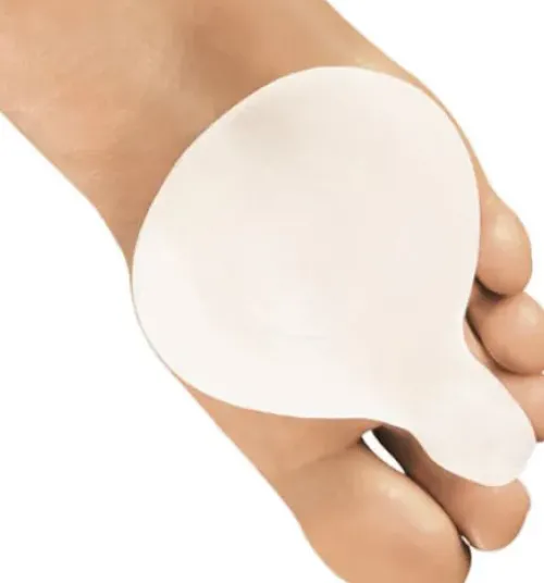 Vorfusspolster aus Silikon, Druckentlastung im Vorfussbereich. Wie bei einem Zehenspreizer wird das Vorfusspolster am Zeh fixiert.
