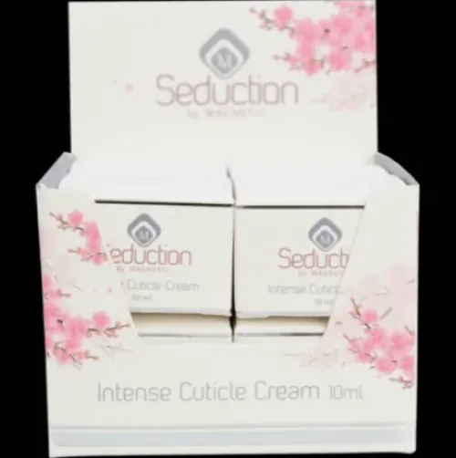 Seduction Intense Cuticle Cream ist eine reichhaltige Creme, die trockene Haut an Händen, Füssen und Ellenbogen pflegt und aufbaut. Die natürlichen Inhaltsstoffe machen Hornhaut, trockene Stellen auf der Haut und auch harte und trockene Nagelhaut weicher. Wenn Sie die Creme täglich anwenden, werden Sie von der Wirkung begeistert sein!