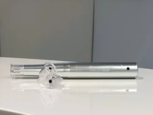 Für kosmetische Behandlungen mit einzigartigen Aufsätzen, die mit 81 pyramidenförmigen Mikrostrukturen bestückt sind. Die Spitzen dieser Silikonpyramiden haben einen Durchmesser von weniger als 10 Mikrometern. Sie sind also so klein, dass sie mit blossem Auge praktisch nicht zu erkennen sind. Die einzigartigen Aufsätze werden in den USA mithilfe von hochmoderner Halbleiter-Fertigungstechnologie aus reinem monokristallinen Silikon in medizinischer Qualität hergestellt.
