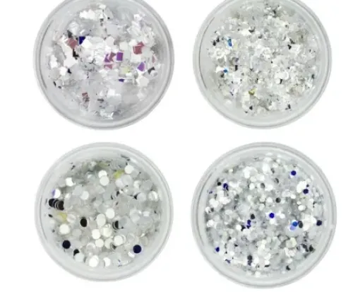 Inspirierende Spezialeffekte mit den White Sensation. Die Flakes schillern je nach Lichteinfall unterschiedlich: genau wie ein Chamäleon die Farbe wechselt.