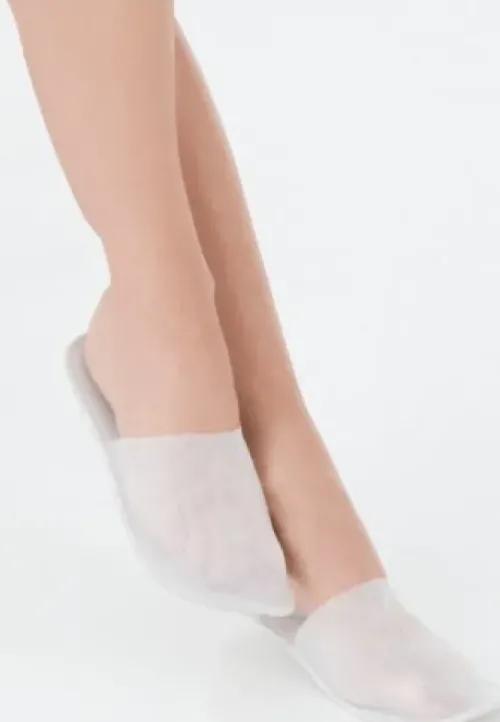 Einwegslipper aus weissem Vliesstoff.