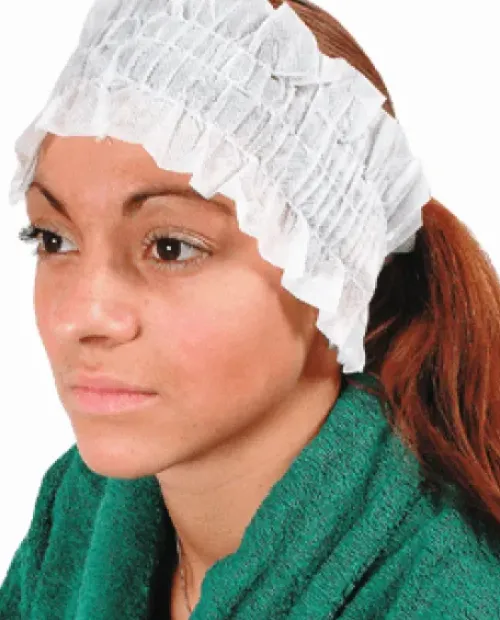 Gesmoktes Einmal-Haarband aus Vliesstoff. Aufgrund der hohen Dehnbarkeit für alle Kopfgrössen (auch für Männer) geeignet.