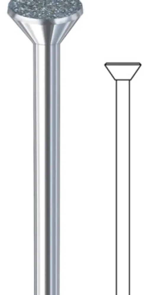 Dieser Diamantfräser hat nur an der Stirnseite Diamant und glattpolierte Aussenflächen.