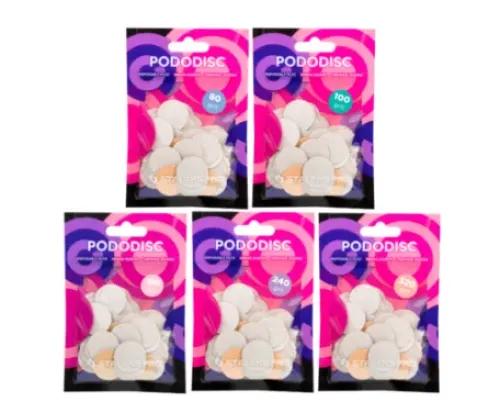 - Die Körnung 100 ermöglicht die Entfernung von stark aufgerauter Haut und das Öffnen von Rissen