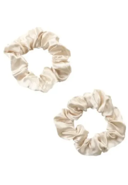 - Nachdem alle Haare aufgewickelt sind, die beiden Enden jeweils mit dem Scrunchie befestigen oder über Nacht tragen.