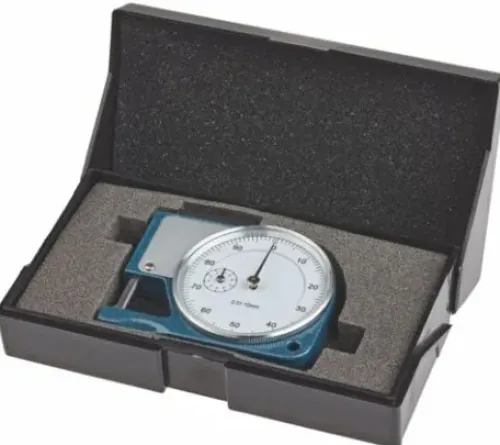 Messflächen gehärtet, geschliffen und gelappt. Messbereich 0-10 mm, Ablesung 0,01 mm.