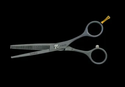 Mit einem durchdachten Design und ergonomischem Griff ermöglicht die Schere eine komfortable Handhabung und sorgt für eine perfekte Schnittführung. Sie ist ideal für das sanfte Ausdünnen und Modellieren von Haaren, um Struktur und Volumen zu optimieren.