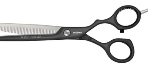 Das schwarze Design der Modellierschere JAGUAR PASTELL PLUS 40 LAVA wirkt extrem cool. Sie ist sowohl in der klassischen Griffform (in der Grösse 5.5 ) als auch in der Offset-Variante (in der Grösse 5.5) erhältlich. Mit 40 Effilierzähnen erleichtert diese Friseurschere das Modellieren und dünnt das Haar fein aus.