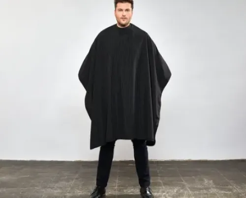 Professioneller Friseur Barberumhang/Rasierumhang der auch perfekt zum Schneiden geeignet ist! Der Trend-Design Barber Black Schneide/Rasierumhang ist ein Muss für jeden Herrenfrisörsalon bzw. für jeden Barbershop. Durch die eleganten Nadelstreifen mit Waffelstruktur haben sie einen stylistischen und hochwertigen Profi-Umhang