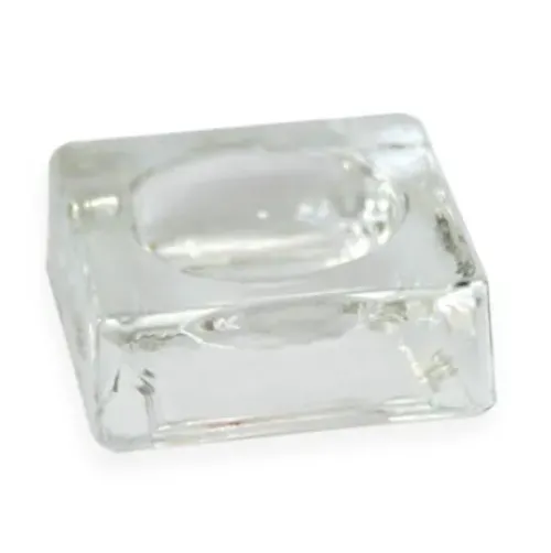 Formschönes Glasschälchen mit einer runden Vertiefung zur Dosierung von Lash Cleanser, Pre-Treatment Bonder, MAGIC Wrap & Glue Stop sowie mit einer flachen Seite zur Dosierung von Kleber.