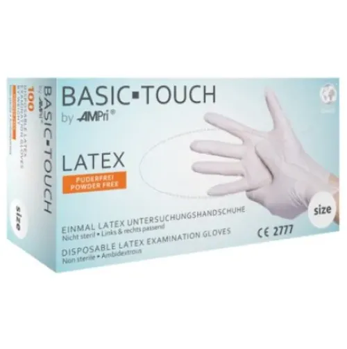 Der Latex-Handschuh der Linie Basic-Touch ist puderfrei, weiss und ist für alle Hygienebereiche geeignet. Diese volltexturierten Latex-Einmalhandschuhe sind ausserordentlich rutschfest und besonders griffig.
