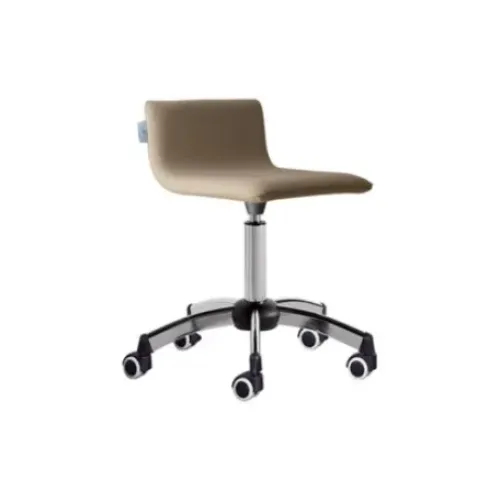 Dieser Stuhl ist sowohl für Schönheitsbehandlungen als auch als Empfangshocker geeignet. Er besticht durch seine schlichte Form und der quadratischen Bodenplatte.