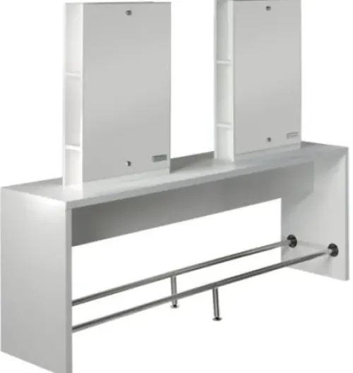 - Material: Ablage Melaminstruktur / Fussstütze Edelstahl