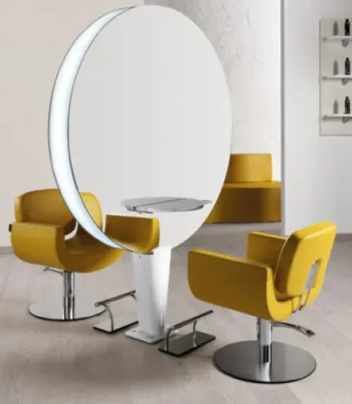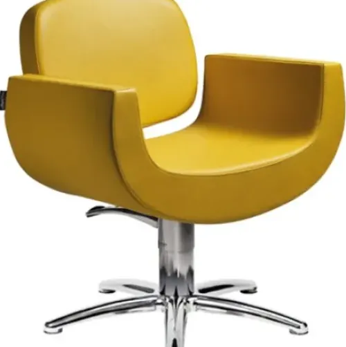 Ein hochwertiger und bequemer Frisierstuhl der sich durch seine weiche, runde und elegante Linien auszeichnet. Seinen einfachen aber auch innovativen Stil, in Verbindung mit der gepolsterten Armlehne und der angenehmen Sitzschale, bietet dem Kunden maximalen Komfort. Mit hydraulischer, dreharretierbarer Pumpe.