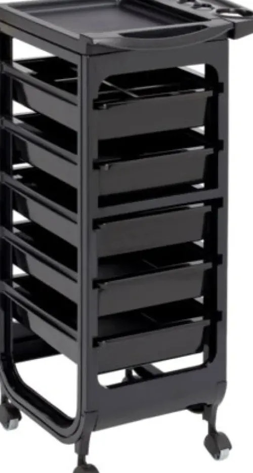 Leichter Service-Boy mit 5 beidseitig herausziehbaren Schubladen und aufsteckbarem Schalenhalter. T 37 x B 30 x H 89 cm.