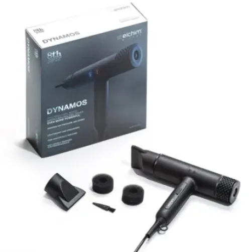 Der Dynamos Haartrockner von Elchim vereint Innovation und Leistung. Ausgestattet mit einem mikro-bürstenlosen Digitalmotor bietet er starken Luftdruck und eine schnellere Trocknung bei maximaler Energieeffizienz. Mit einem leichten, ergonomischen Design und einer speziellen 40-mm-Turbo-Flow-Technologie sorgt er für perfektes Styling bei allen Haartypen. Dank 3 Geschwindigkeiten und 4 Temperaturen ist er vielseitig und leicht zu handhaben. Der speziell entwickelte Filter ermöglicht eine einfache Reinigung. Dynamos ist ideal für Profis und in Italien exklusiv gefertigt.