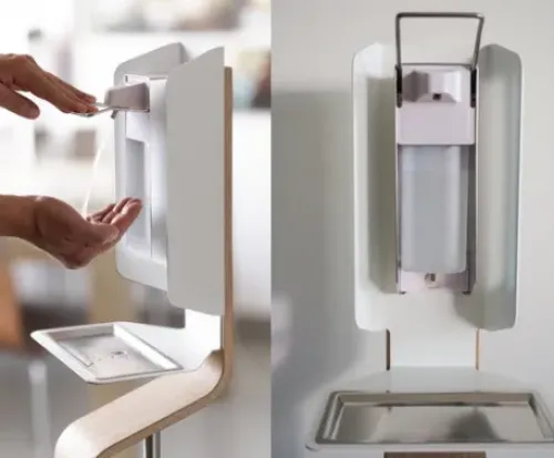 H.U.G.O. ist mehr als ein Desinfektionsspender, wirkt wie ein Objekt aus feinem Holz mit natürlicher Anmutung. Geformt mit einem aufwändigen Herstellerprozess, dank unsichtbarer Oberflächenlackierung unempfindlich gegen mechanische oder chemische Einflüsse, beweist er als Designobjekt, wie sich ein „Must“ zum „Must-have“ wandelt. Eleganz und Funktion auf einer Linie, die formvollendet zur Händedesinfektion motiviert.