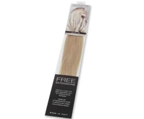 SEISETA Free Extensions Strähnen bestehen aus einem natürlichen Weft von 12 cm Breite mit 3-Clips zur Verbindung. Ideal für eine schnelle und einfache Anwendung und zum Realisieren von trendigen und asymmetrischen Frisuren.