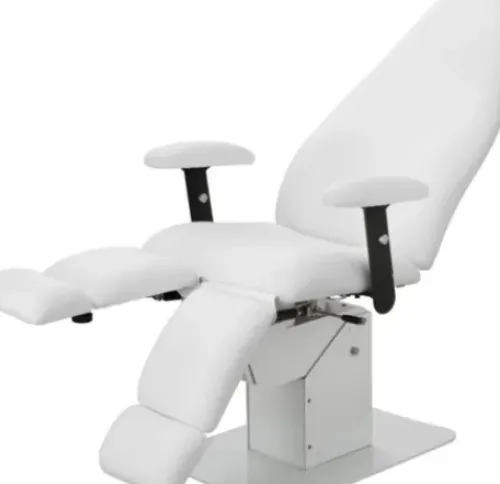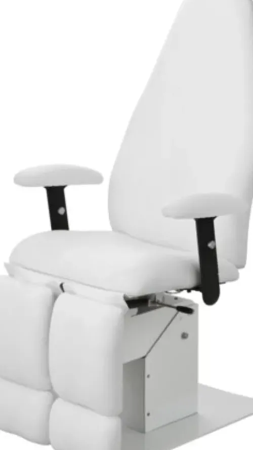 Dieser Fusspflegestuhl besticht durch seine einfache Handhabung und sein klares Design. Die Höhe ist mittels Fussschalter elektrisch verstellbar. Die Rückenlehne so wie die Beinteile mit Grasdruckfeder-Unterstützung stufenlos einstellbar. Die Fersenteile können über Stellrauben individuell verlängert werden. Die Nackenstütze können Sie mit dem Klettverschluss justieren.
