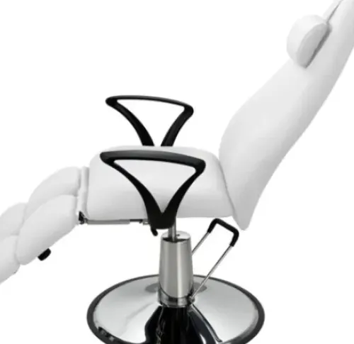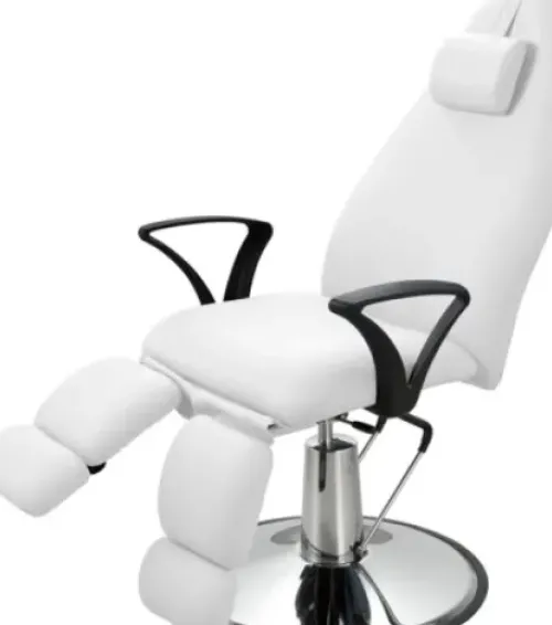 Dieser Fusspflegestuhl besticht durch seine einfache Handhabung und sein klares Design. Die Höhe ist mittels Hydraulikpumpe, die Rückenlehne so wie die Beinteile mit Gasdruckfeder-Unterstützung verstellbar.
