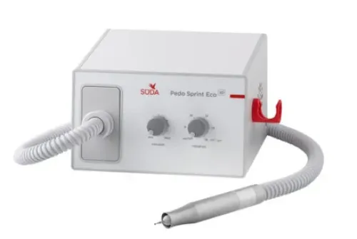 Der Sprint ECO SP ist ein Fusspflegegerät mit integrierter Absaugung. Mit diesem Gerät kommt Süda dem Wunsch der Kunden nach einem einfachen und leistungsfähigen Fusspflege-System nach. Dieses System zeichnet sich durch die genial einfache Bedienung und ein sensationelles Preis-Leistungsverhältnis aus, ohne dabei Kompromisse in der Qualität der verwendeten Komponenten zu machen.