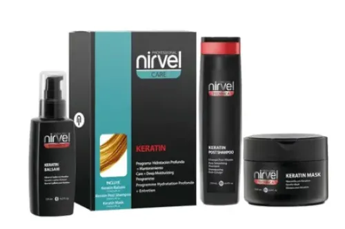 Nirvel Keratin Kit ist eine Keratinbehandlung mit tiefenwirksamen, feuchtigkeitsspendenden und reparierenden Inhaltsstoffen. Dank Keratin bietet die Behandlung alles, was nötig ist, um die Haarstruktur nach Schäden durch Heizgeräte, Föhnen, Färben, Sonneneinwirkung usw. wiederherzustellen. Hinterlässt das Haar glänzend und aussergewöhnlich seidig.