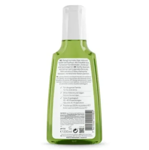 Mit 93% Inhaltsstoffen natürlichen Ursprungs enthält dieses Shampoo geballte Kräuterpower. Die Original-Rezeptur stammt aus dem Jahr 1919 und wurde seither stetig weiterentwickelt. Heute gehört es zu einem der meistverkauften Shampoos der Schweiz. Die vegane, silikonfreie Rezeptur wurde damals wie heute sorgfältig hergestellt, mit hauseigenen Extrakten aus Panamarinde sowie Schweizer Bio-Kamillenblüten, Zinnkraut und Spitzwegerich aus Wildsammlung.