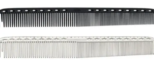 Nahezu unzerbrechlicher Spezialkunststoff, äusserst biegsam und robust. Lochstruktur am Kammrücken bietet Hilfe beim Messen bzw. Abschätzen von Längen (Lochabstände von jeweils ca. 1 cm). „GDP“ Gleichmässige Spannung für gerades Kämmen.