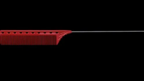 Einfacher Nadelkamm aus hochwertigem Kunststoff, der eine ausgezeichnete Beständigkeit gegen Hitze und Chemikalien aufweist. Der Kunststoffkamm ist ideal zum Wickeln und Weben. Der verkürzte Zahn am Rand des Kammes, der sogenannte Abteilzahn, erleichtert das Trennen.