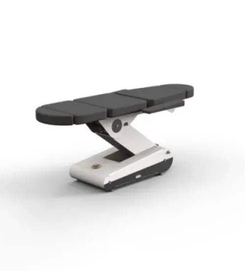 Professionelle Kosmetikliege und Multitalent. Über den Handschalter wird die elektrische Höhen-, Rückenlehne-, Fussteil- und Sitzwinkelverstellung in die gewünschte Position gebracht.