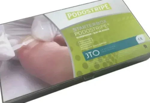 Die patentierte Technik der PODOSTRIPE® vereint alle Vorteile der modernen Orthonyxie in einem Produkt: anwenderfreundliche Handhabung und maximaler Halt auf allen Nägeln Dank des weichen Materials, das sich an jede Nagelform anpasst. Ausserdem garantiert PODOSTRIPE® sofortige Schmerzlinderung für den Patienten und ist praktisch unsichtbar.