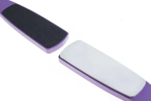 Ein einzigartiges Kosmetikaccessoire: Die erste und einzige 2-in-1-Fusssfeile mit elastischer Oberfläche für glatte, geschmeidige Füsse. Die zwei grossen Schleifflächen ermöglichen eine Pediküre in zwei Schritten: Die raue Fläche beseitigt zuerst die Hornhaut, während die elastische, extra-sanfte Fläche danach für ein samtweiches Finish sorgt. Laut Fusspflege-Profis ist diese Kombi-Fussfeile so wirksam, dass ein Peeling nach der Pediküre überflüssig ist.